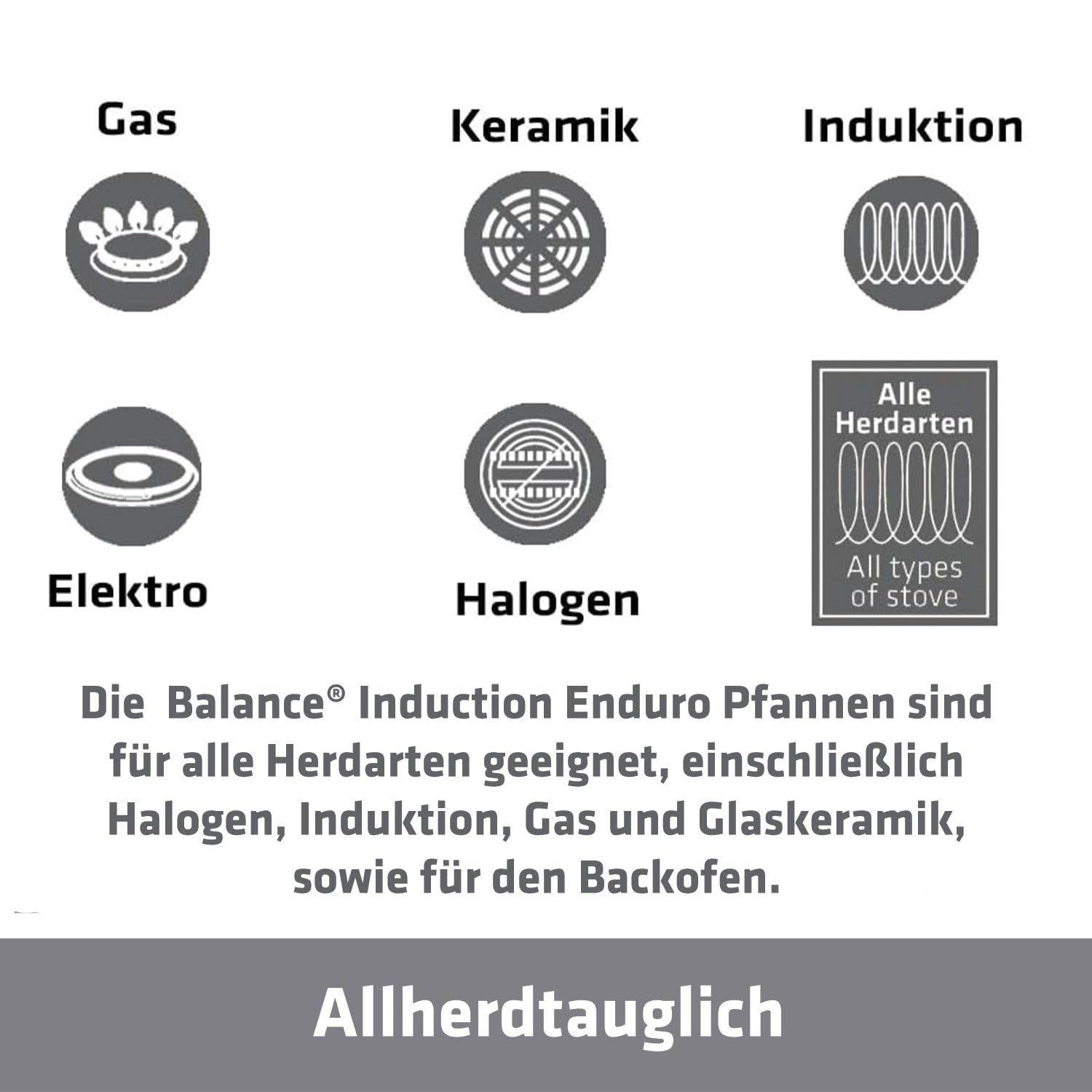 • BACKOFENGEEIGNET BIS 140 °C: Die Balance Induction Enduro Pfannen sind bis zu 140 °C backofengeeignet, was eine größere Flexibilität bei der Zubereitung verschiedener Gerichte ermöglicht. Vom Herd in den Ofen, diese Pfannen bieten die Vielseitigkeit, die moderne Köche benötigen, um kreative und leckere Mahlzeiten zu zaubern.