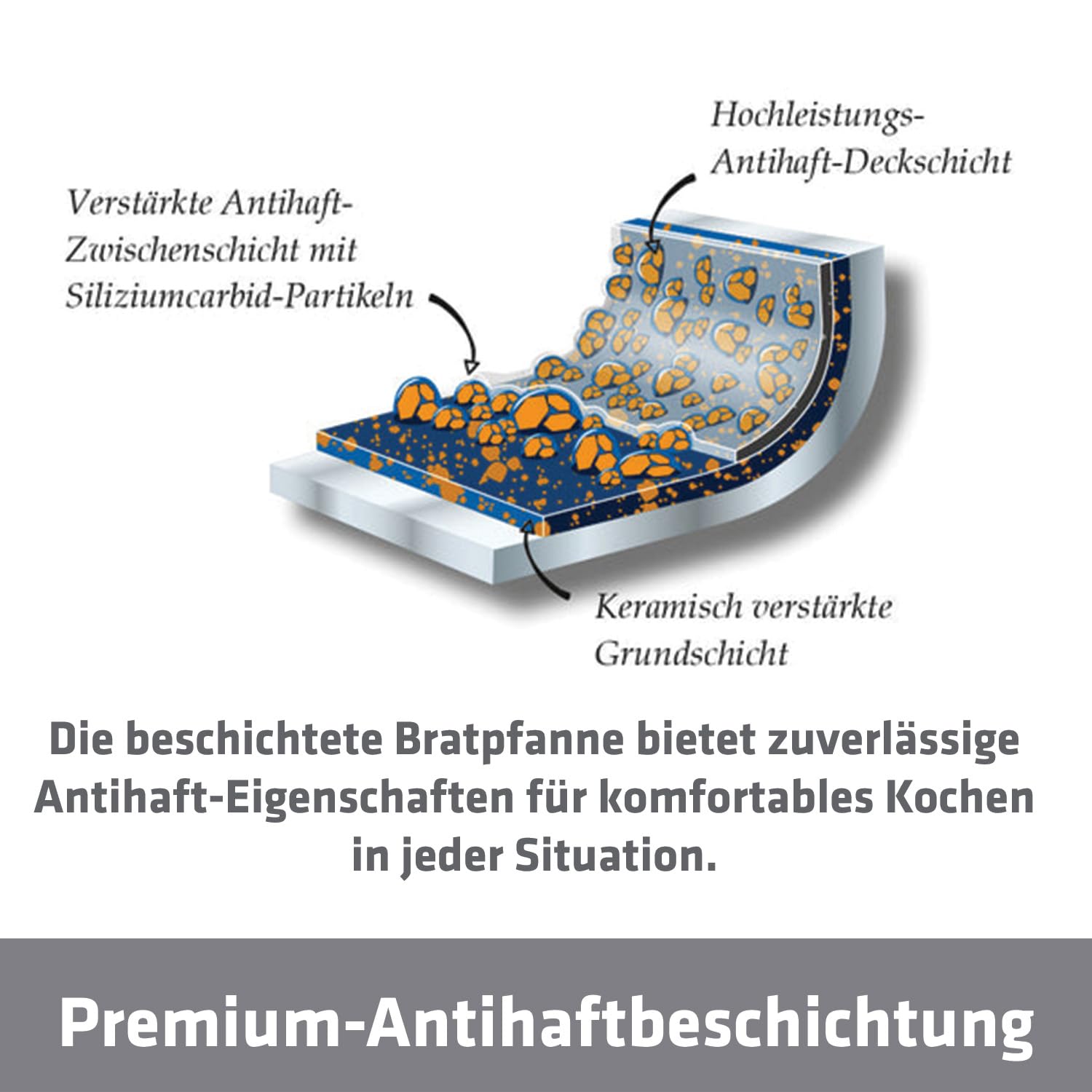 • KOMPATIBEL MIT ALLEN HERDARTEN: Der ferromagnetische Induktionsboden der Pfannen sorgt für eine gleichmäßige Hitzeverteilung und ist für alle Herdarten geeignet, einschließlich Induktion. Diese Vielseitigkeit macht die Pfannen zur idealen Wahl für jede Küche, egal welche Kochquelle Sie verwenden.