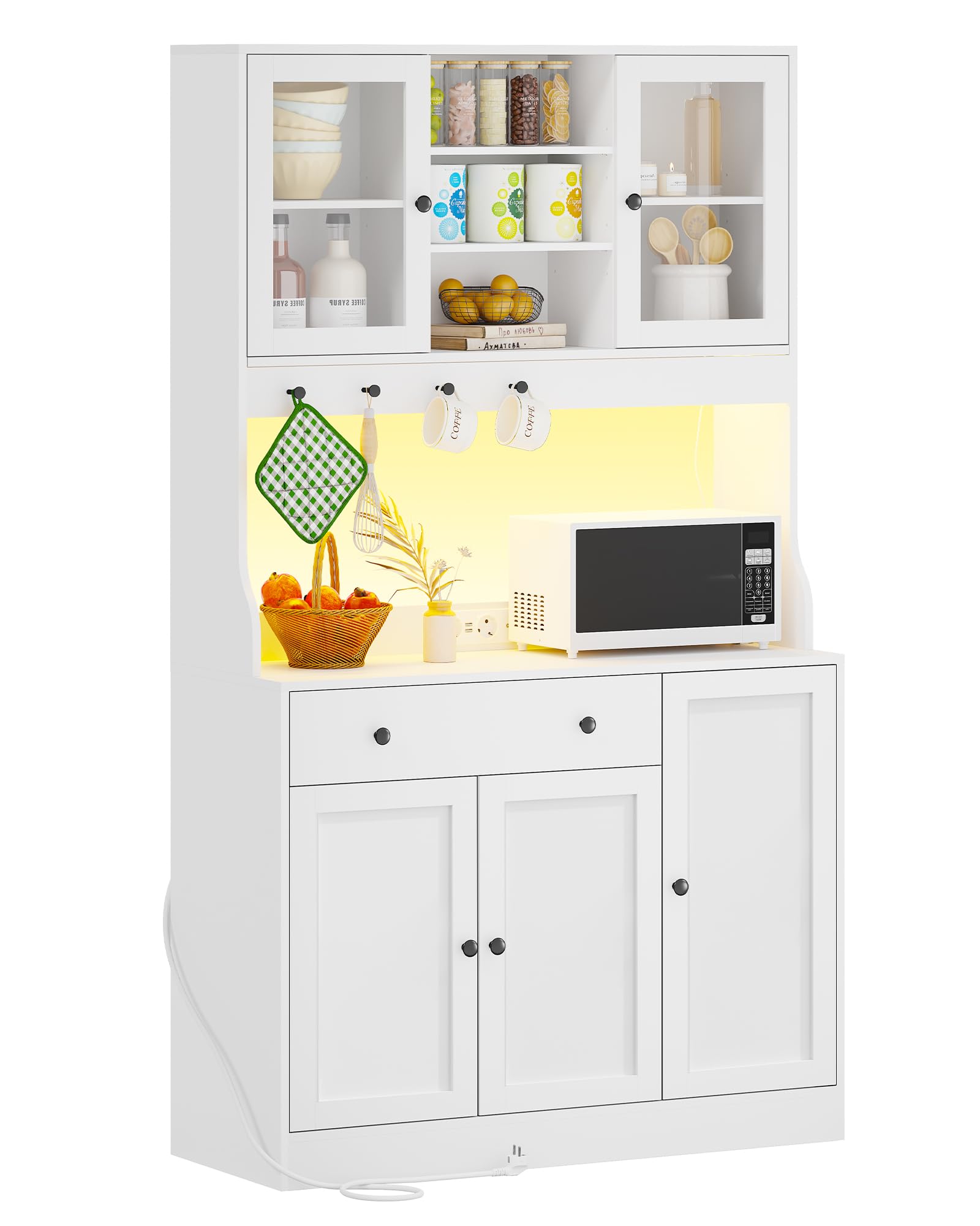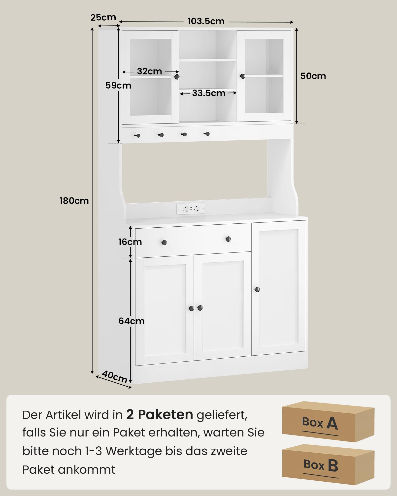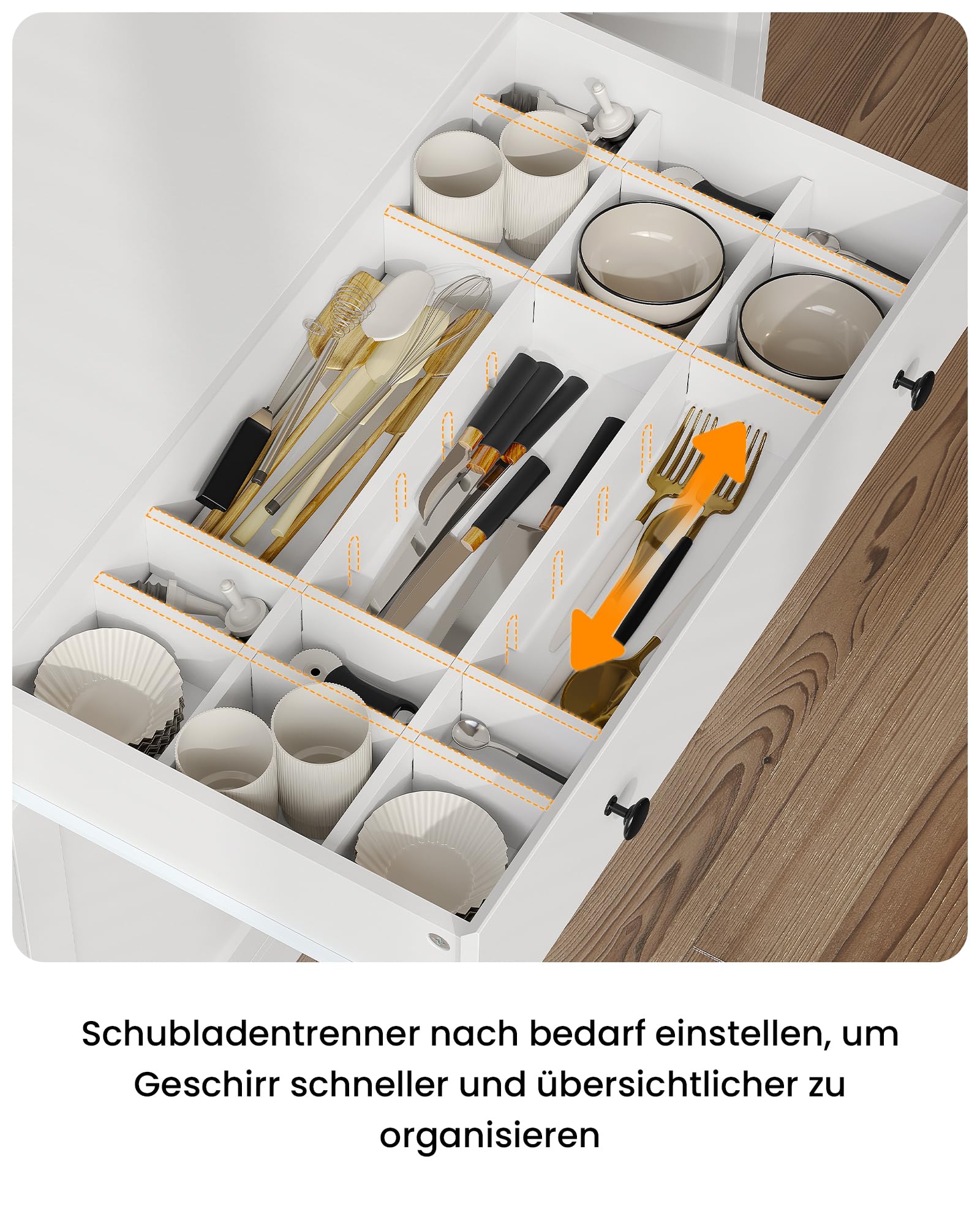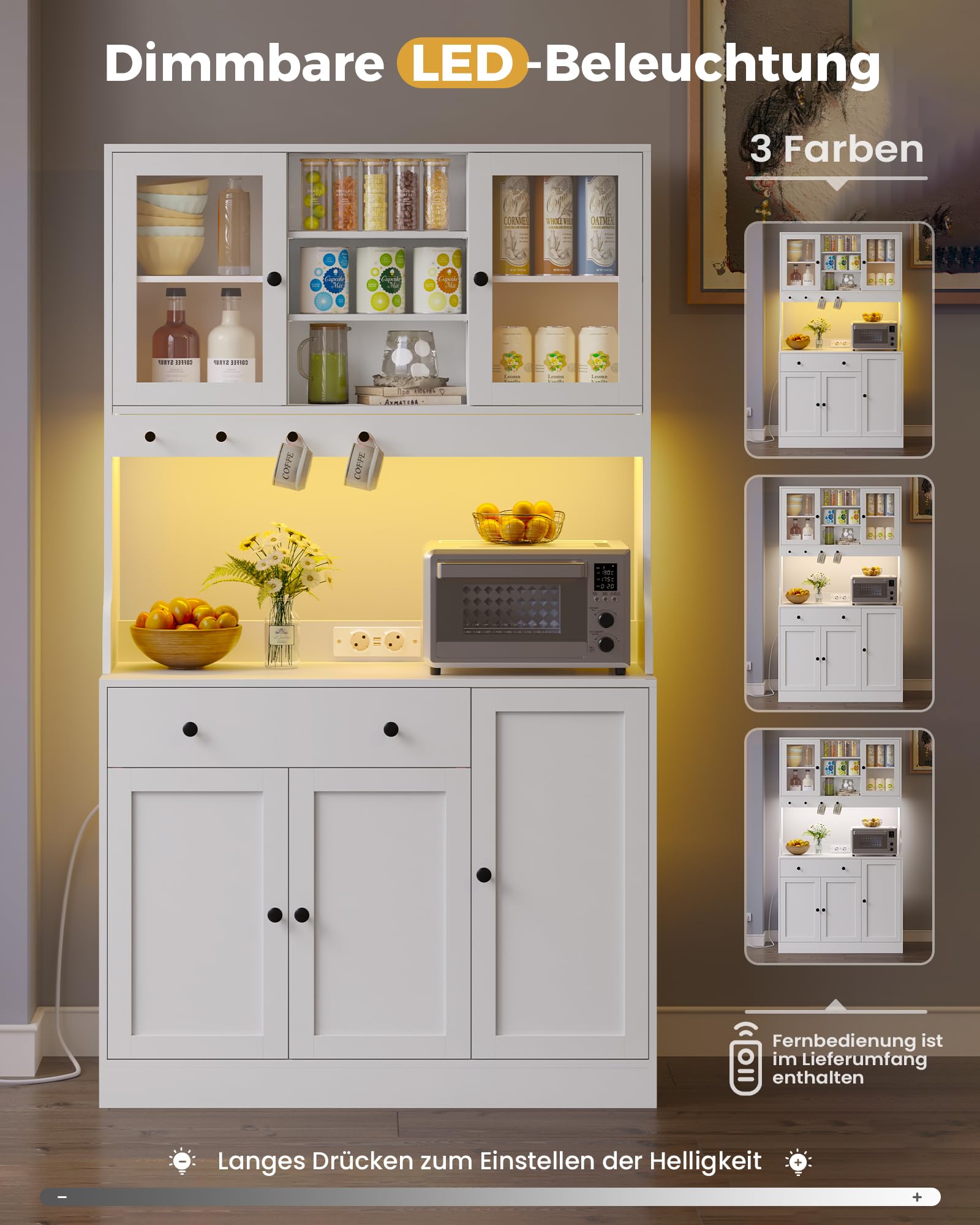 Küchenschrank mit Arbeitsplatte, Sideboard mit LED, Steckdose, Buffetschrank mit Schubladen, Verstellbaren Ablagen, Großer Stauraum, Küche, Wohnzimmer, Esszimmer, 103.5 * 40 * 180 cm, Weiß